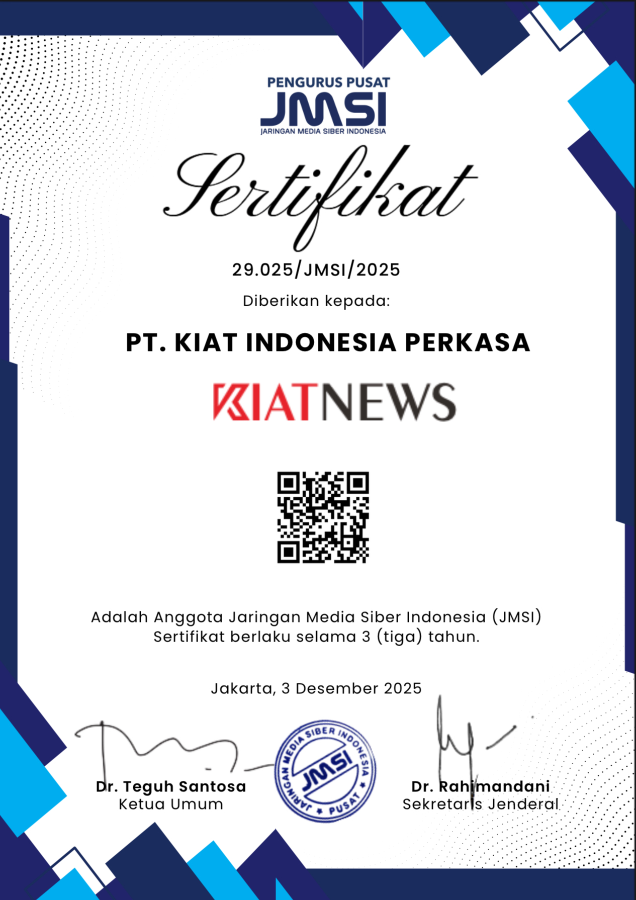 Metro KotaKiatNews.co.id18 Desember 2025 Anggota Dewan Pers Yogi Hadi Ismanto Dijadwalkan Hadir di Pelantikan dan Rakerda JMSI Sultra KIATNEWS : KENDARI – Ketua Komisi Penelitian, Pendataan dan Ratifikasi Pers, Yogi Hadi Ismanto dijadwalkan