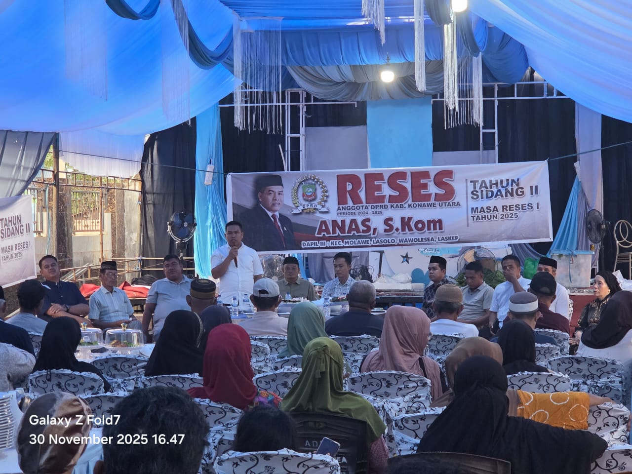 Reses tersebut juga di hadiri langsung Bupati Konawe Utara Ikbar, anggota DPRD Konawe Utara dari Fraksi Gerindra, Samir serta Camat Molawe, Kades Tapuemea, Kades Tapunggaeya serta puluhan warga.