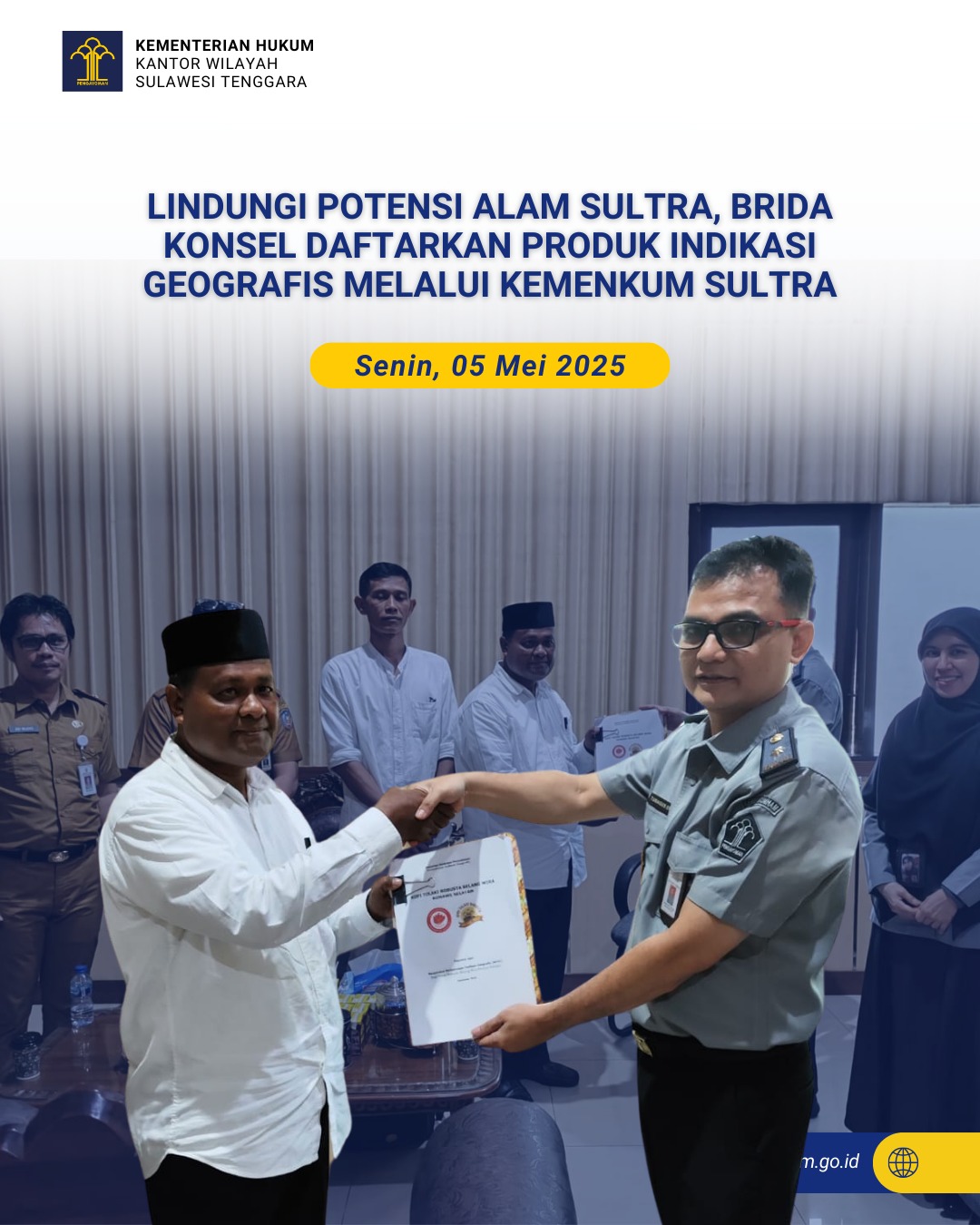 Penyerahan dokumen deskripsi ini sebagai bentuk sinergi kantor wilayah dan pemerintah daerah dalam mendorong pendaftaran indikasi geografis di Sulawesi Tenggara.