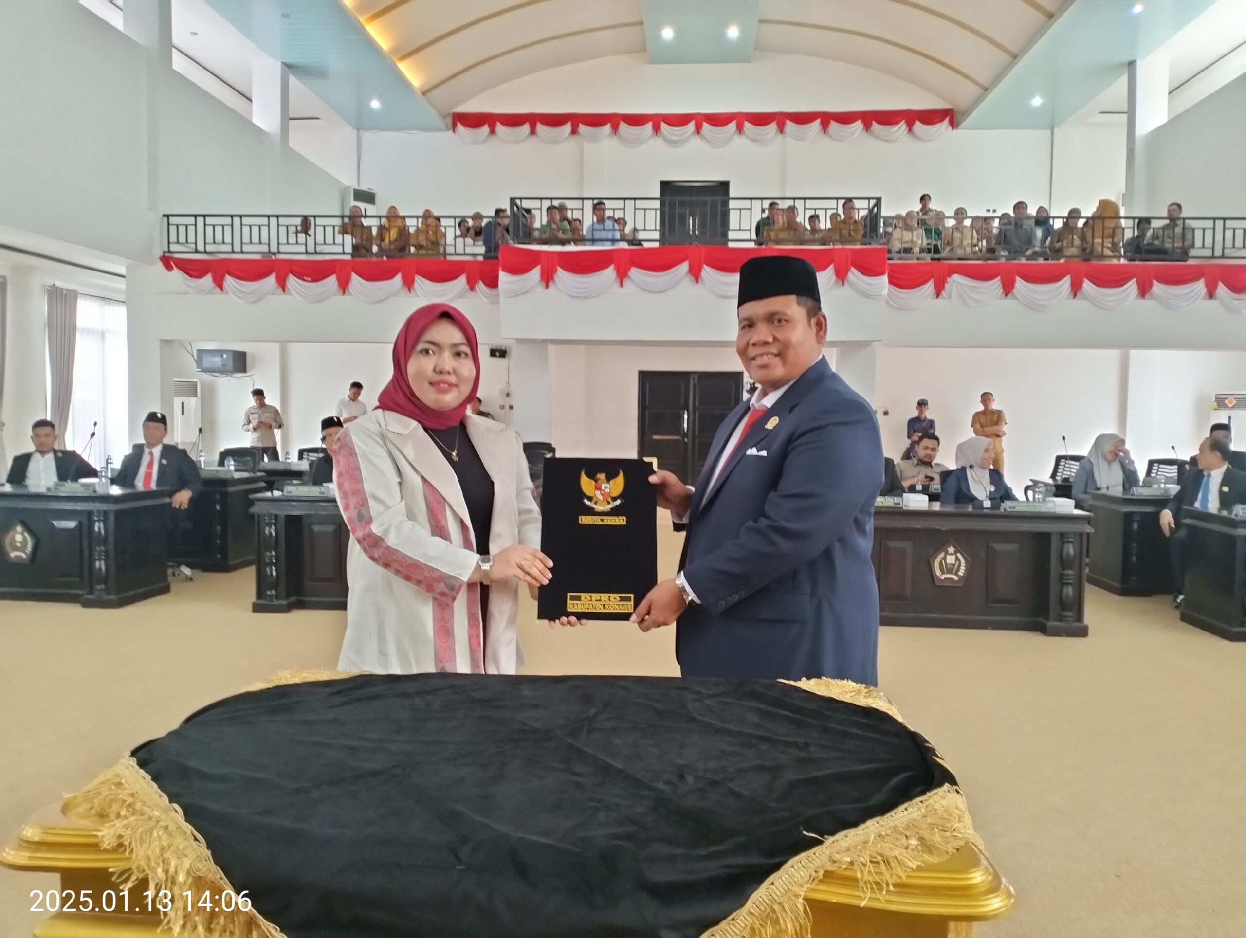 Dalam sambutannya, Ketua DPRD Konawe menegaskan bahwa pengesahan ini bukan sekadar agenda formal, melainkan amanah rakyat yang harus dijalankan dengan penuh tanggung jawab.