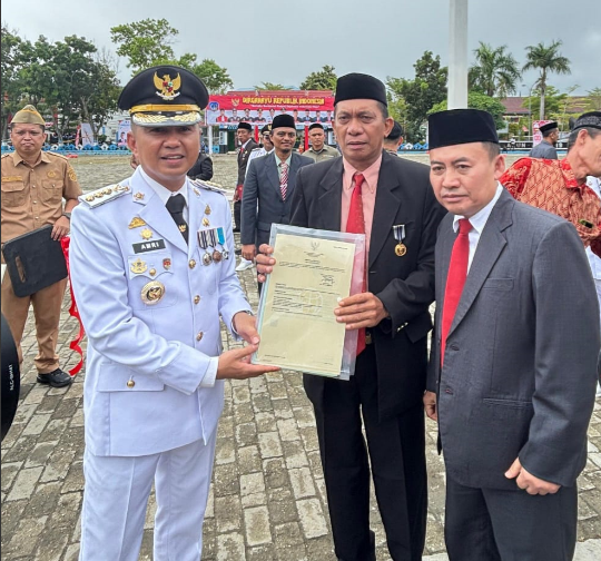 KIATNEWS : KOLAKA – Dalam rangka memperingati Hari Ulang Tahun Kemerdekaan Republik Indonesia ke-80, Kantor Pertanahan Kabupaten Kolaka bersama Pemerintah Daerah Kabupaten Kolaka melaksanakan kegiatan penyerahan sertipikat tanah hasil Program Pendaftaran Tanah Sistematis Lengkap (PTSL). Acara ini berlangsung khidmat dengan disaksikan langsung oleh Bupati Kolaka bersama jajaran Forkopimda, Kamis 17 Agustus 2025.