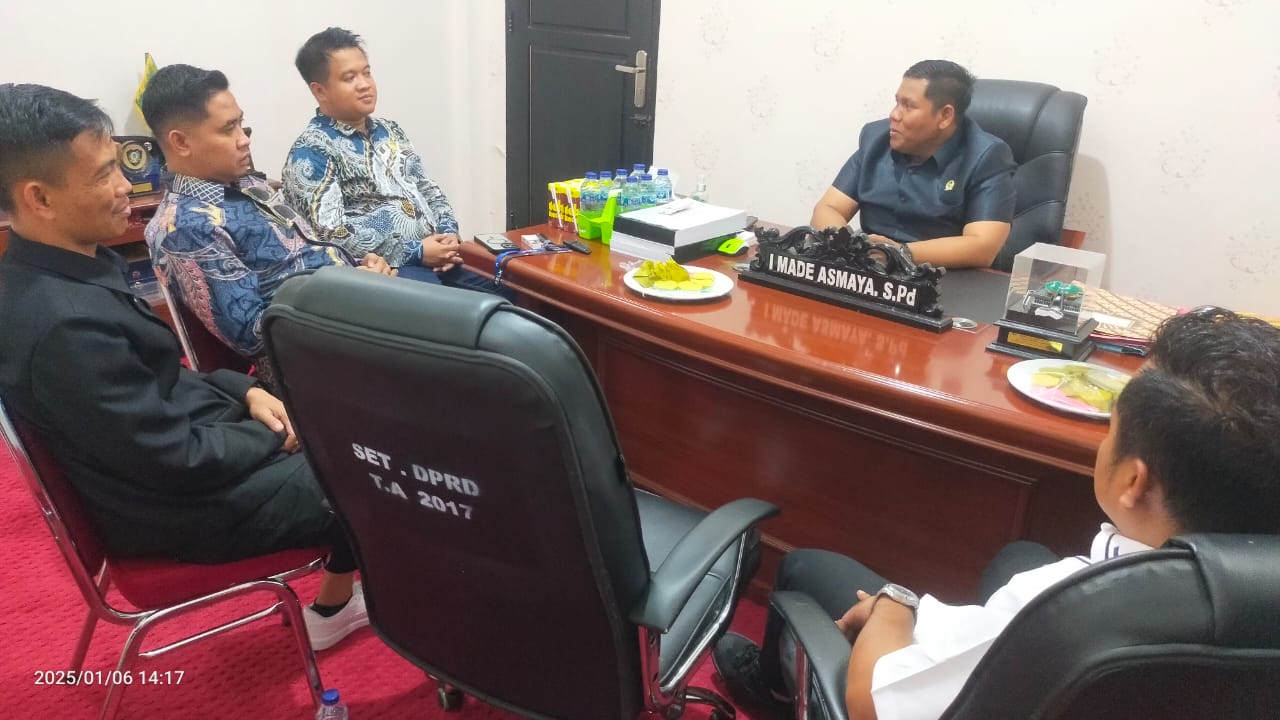 Rombongan DPRD Morowali yang dipimpin Ketua DPRD Herdianto Marsuki, SE, bersama anggota Puspa Bayu Nugraha, STP, M.PW, disambut langsung Ketua DPRD Konawe I Made Asmaya, S.Pd., MM, didampingi Wakil Ketua II Nasrullah Faizal, SH, serta Ketua Komisi I Dedy, SE.