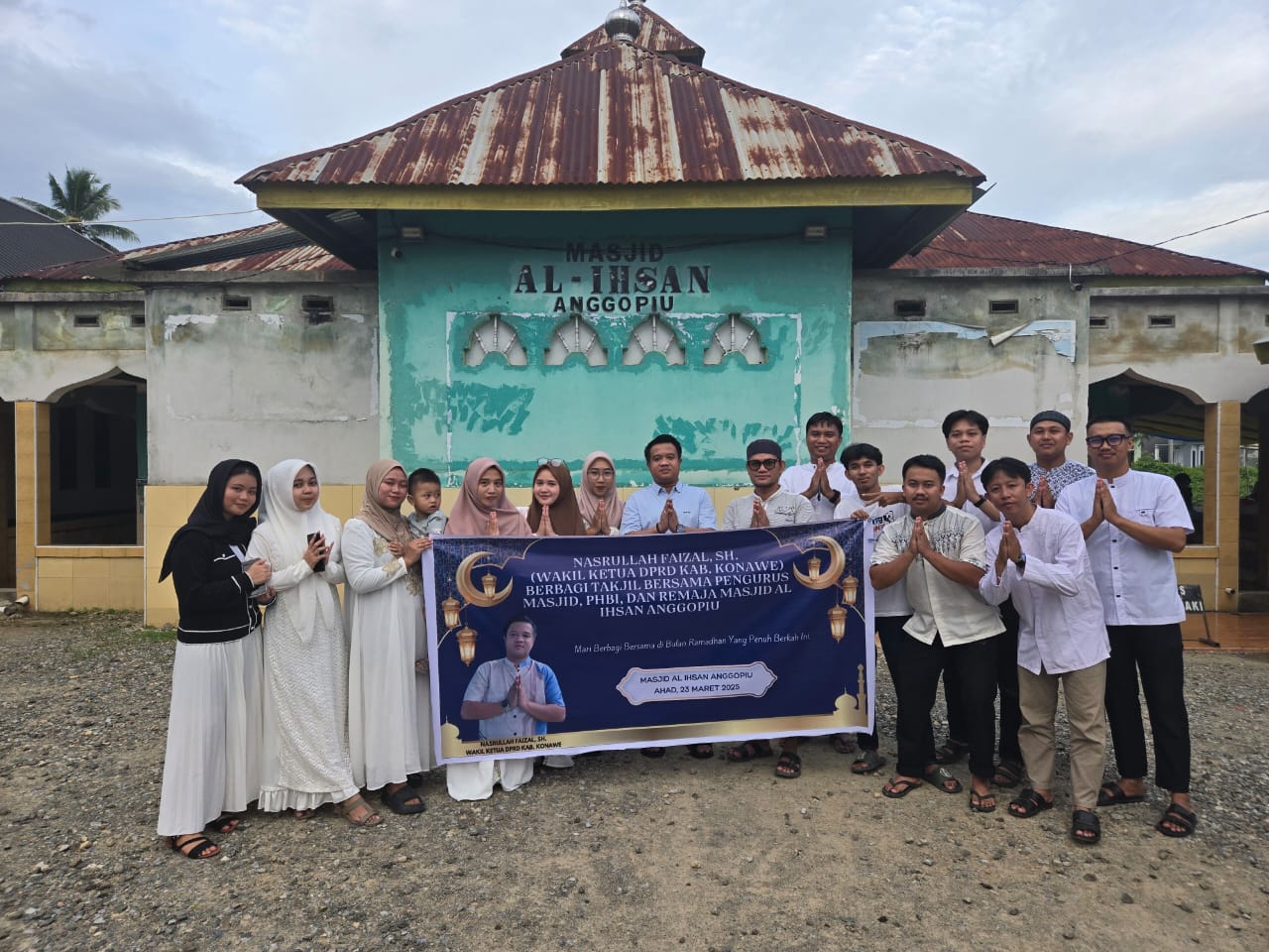 Wakil Ketua DPRD Konawe, Nasrullah Faizal, SH, bersama pengurus Masjid Al Ihsan turun langsung membagikan paket takjil kepada warga dan pengguna jalan, Minggu, 23 Maret 2025.