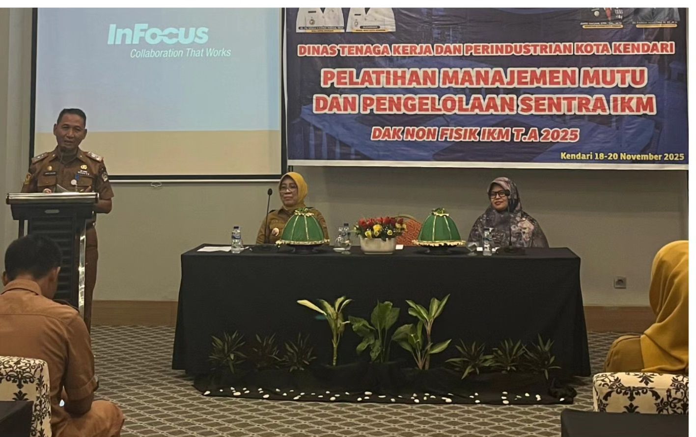 Hal ini diwujudkan melalui Pelatihan Manajemen Mutu dan Pengelolaan Sentra IKM yang digelar di salah satu hotel di Kendari, Selasa 18 November 2025.