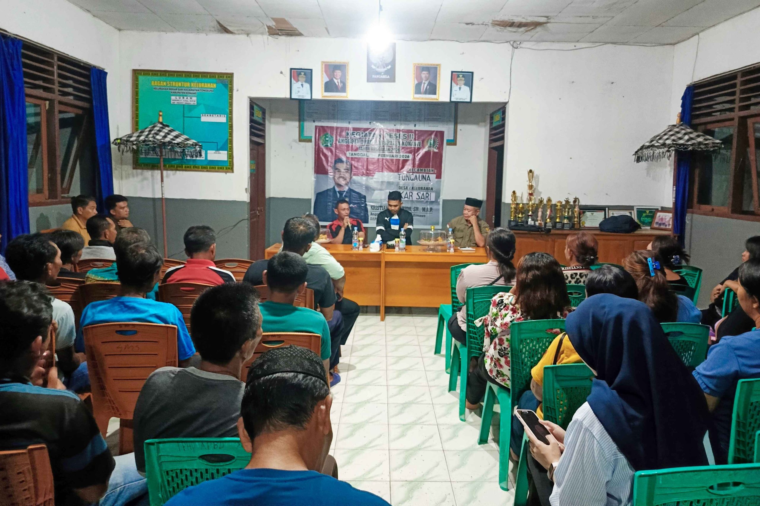 KIATNEWS : KONAWE – Anggota Dewan Perwakilan Rakyat Daerah (DPRD) Kabupaten Konawe, Kristian Tandabioh reses di Kelurahan Mekar Sari, Kecamatan Tongauna, Kabupaten Konawe, Rabu 11 Februari 2026.