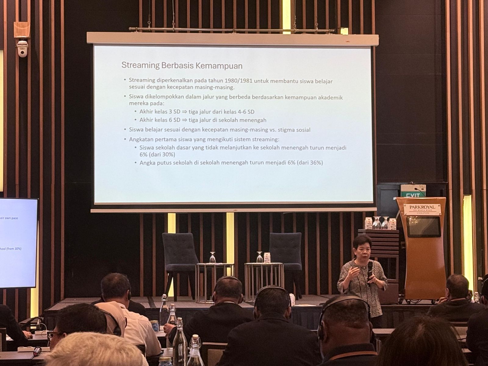 Salah satu sesi yang menarik perhatian peserta adalah paparan dari Ms. Chan Lai Fung, Sekretaris Tetap Lembaga Penelitian dan Pengembangan Singapura. Dijelaskan secara mendalam bagaimana pemerintah Singapura menjadikan pendidikan sebagai prioritas utama pembangunan nasional sejak masa awal kemerdekaan tahun 1959.